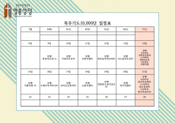천상의 모후cu. 제294차 월례회의 및 묵주기도 일만(10,000)단 봉헌 페이지 정보 작성자 박범환 (211.♡.64.88) 댓글 0건 조회 3,978회 작성일 24-07-10 22:28 목록 본문 2024년 7월 10일 19:00시 부터, 1층 식당에서 천상의 모후cu. 제294차 월례회의가 진행되었다. 각 쁘레시디움별로 날짜에 맞추어 묵주기도 10,000단 봉헌일정 체크와 새로 임명된 4간부들의 임명소개가 있었다. 또한 루시아 꾸리아 단장은 소임을 맡은지 1년이 되는 축하로 찹쌀떡을 선물로 전단원과 함께 나누였다. 차클레멘스 수녀님의 훈화와 함께 제294차 월례회의가 마무리 되었다. 이전글갓등OB 중창단 영종본당 공연 휘날레 ~~~ 24.07.17 다음글레지오마리애(Legio Mariae) 입단선서식 24.06.01 댓글 0 댓글목록 등록된 댓글이 없습니다.