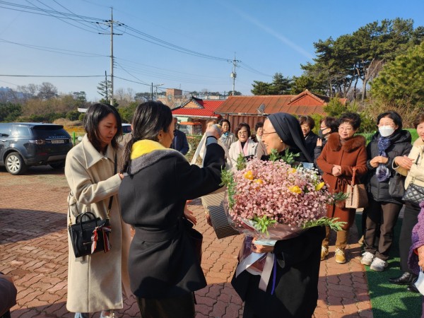 마리휘앗 수녀님 임지(任地) 이동 페이지 정보 작성자 박범환 (211.♡.195.209) 댓글 0건 조회 5,323회 작성일 24-02-26 21:45 목록 본문 본당 신 마리휘앗 수녀님이 새로운 발령지로 이동하셨다. 금일(2024년 2월26일) 09시 미사후 여러신자와 본당 신부님의 배웅을 받으며 발령지(發令地)인 경기도 시흥소재 성가포도농원으로 옮기셨다.미사중 짧은 소회(所懷)와 함께 정든 본당 신자들과 교감을 가졌다. 이전글정 디에고 수녀님 첫 미사 봉헌 24.02.27 다음글정월대보름 본당 한마음 윷놀이(척사:擲柶)대회 24.02.25 댓글 0 댓글목록 등록된 댓글이 없습니다.