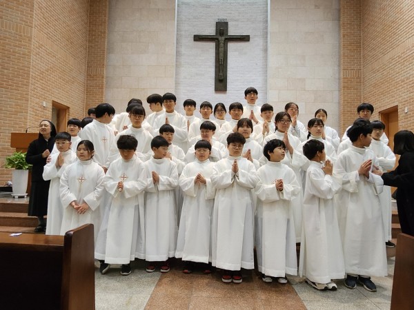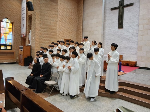 어린이 복사단 선서식 과 갱신식 페이지 정보 작성자 박범환 (211.♡.195.209) 댓글 0건 조회 4,957회 작성일 24-01-21 18:58 목록 본문 금일 1월21일 교중미사시간에 새로이 선서식을 한 10명 어린이의 입단식이 있었다. 아울러 기존 어린이 복사단의 갱신식도 같이 진행되었다. 이전글소년레지오 '상아탑' 쁘레시디움(Pr.), 교구 역사관 관람 24.01.21 다음글사목회 새해 일정과 인사나누기 24.01.15 댓글 0 댓글목록 등록된 댓글이 없습니다.