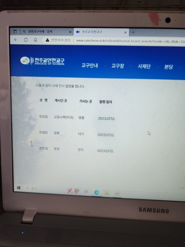 이상은 7월2일 천주교 인천교구 사제 인사발령입니다.
