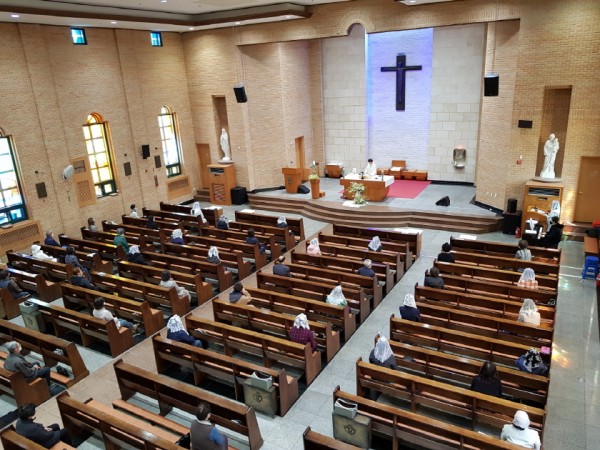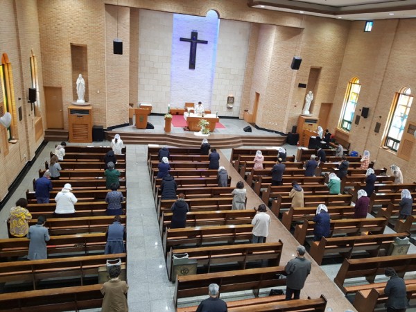23일 시작되는 평일미사 부터 대성전에서 봉헌하겠습니다. 그리고 당분간은 평일미사를 대성전에서 봉헌하고 2M이상의 거리를 두고 자리에 앉아 주십시오.